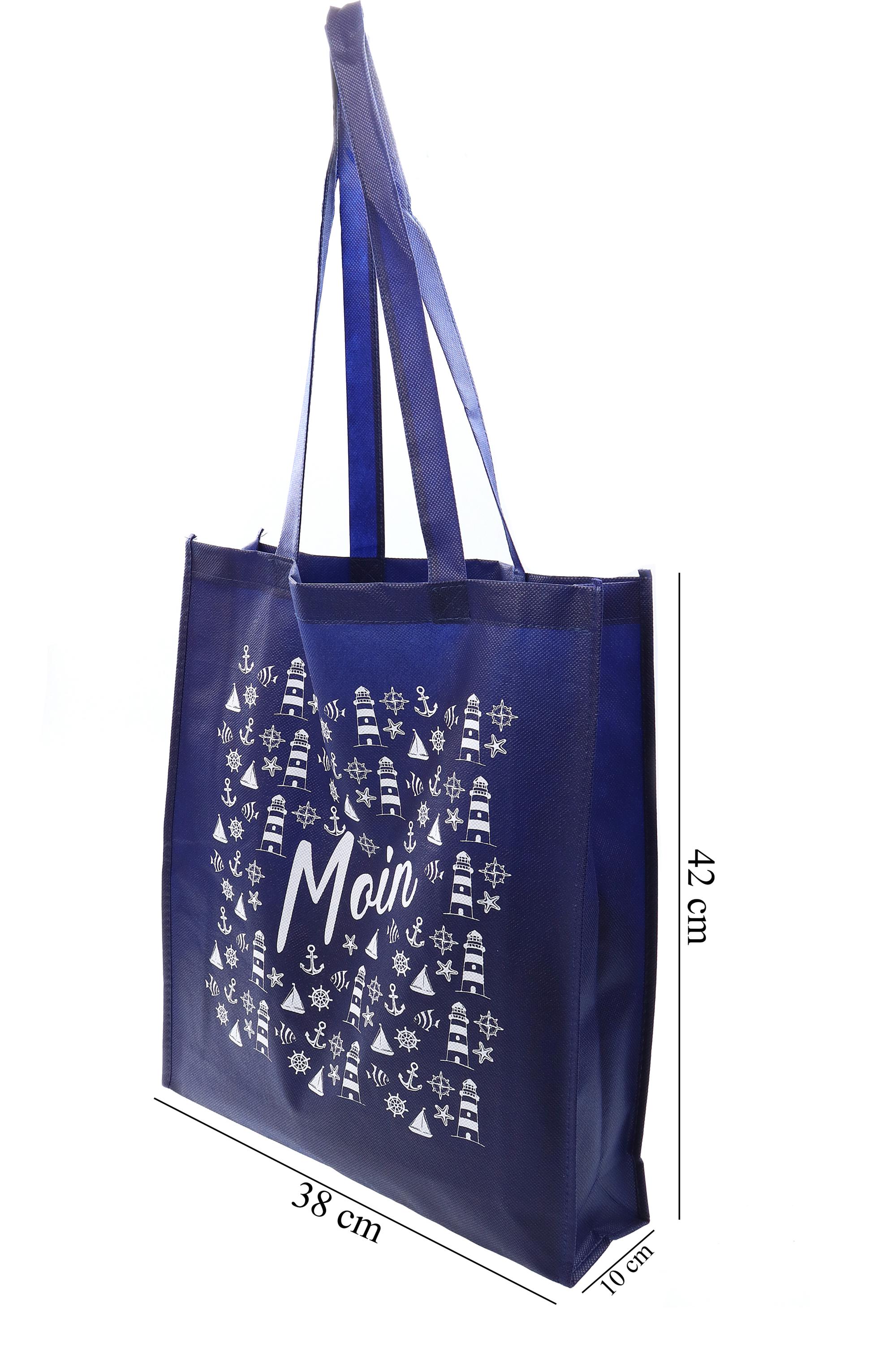 Weiterführende Links zu "Maritime navyblaue Einkaufstasche „Moin“ aus Non Woven mit sommerlichem Design zweiseitig bedruckt 38*42*10cm Tasche Tragetasche Urlaubstasche Strandtasche"