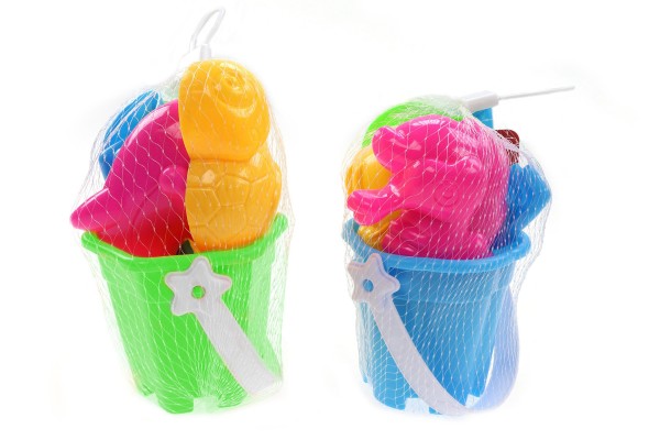 - zu dem Eimer erhalten Sie 2 Sandformen, 1 Schaufel, 1 Sieb, 1 Rechen, 1 Kugelschaufel