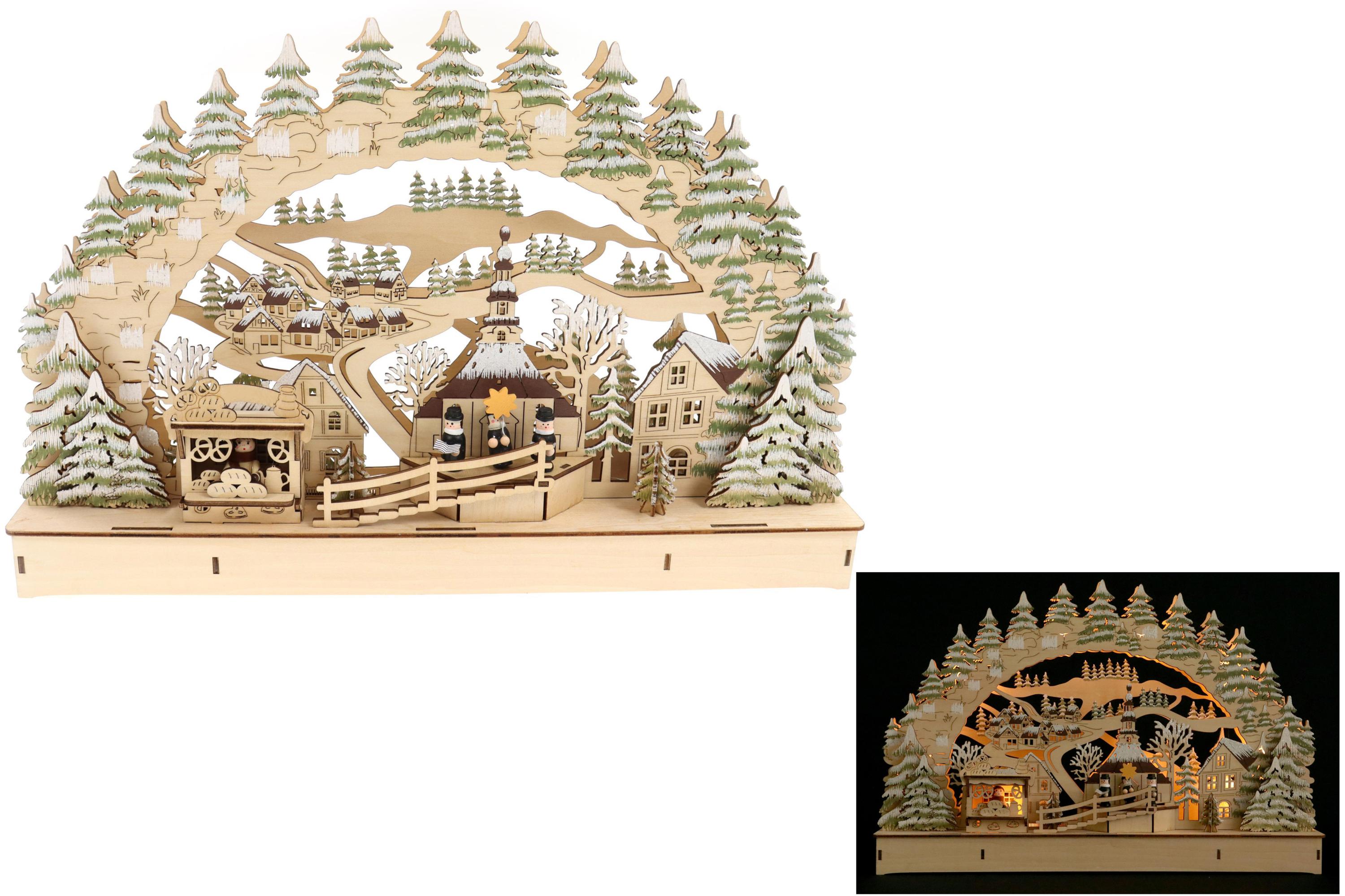 Weiterführende Links zu "0030400 Holzschnitt Winter Dorf mit Licht und Glitzer, 44,5*7*29,5cm"
