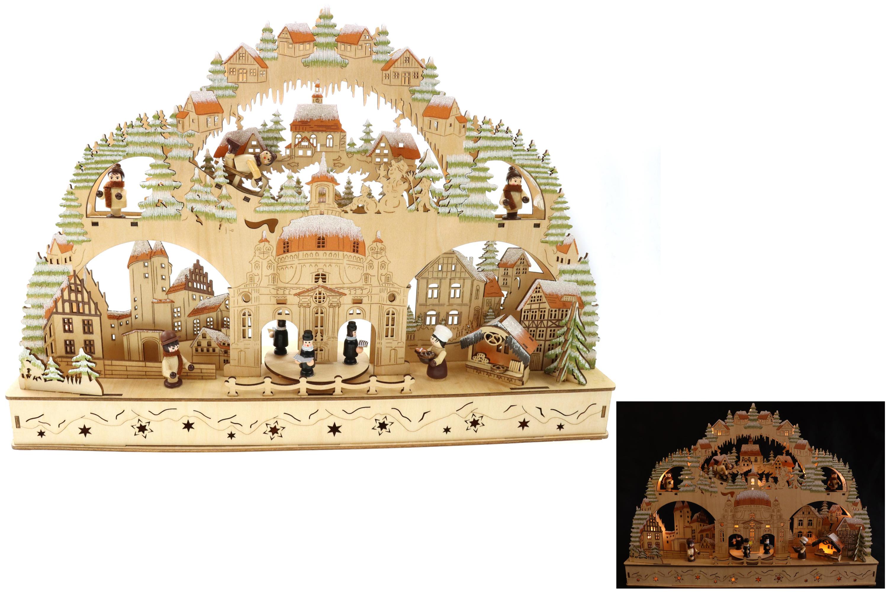 Produktinformationen "Holzschnitt Lichterbogen, drehende Sänger, Glitzer, 45*9*32cm"