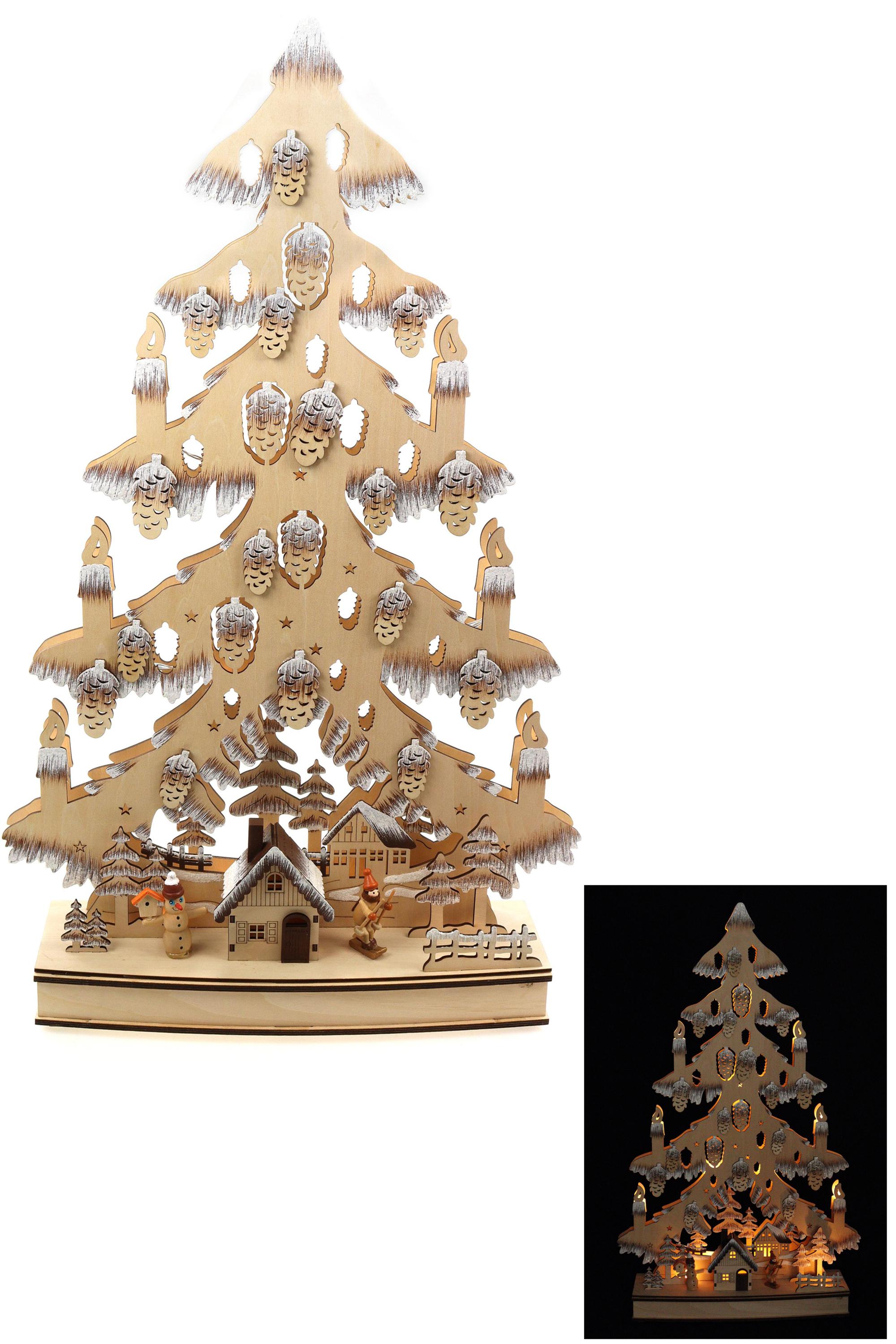 Weiterführende Links zu "3D Schwibbogen Lichterbogen Holzschnitt als Tannenbaum mit Licht & Glitzer H: 64cm, batteriebetrieben & Timer-Funktion"