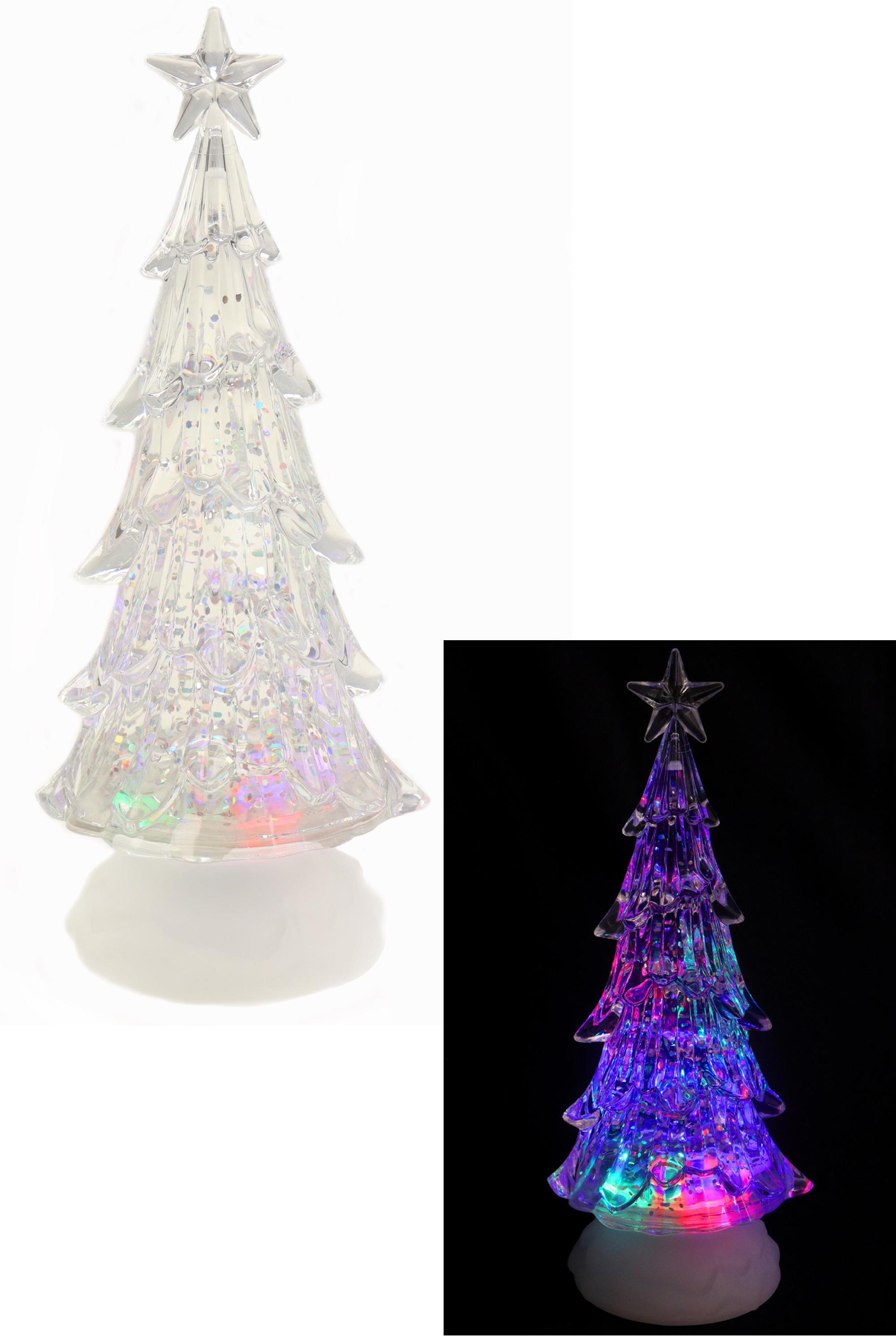 Schneekugel als Tannenbaum mit bunter Regenbogen LED Beleuchtung & Glitzerantrieb 11*11*27 cm als Weihnachtsdeko