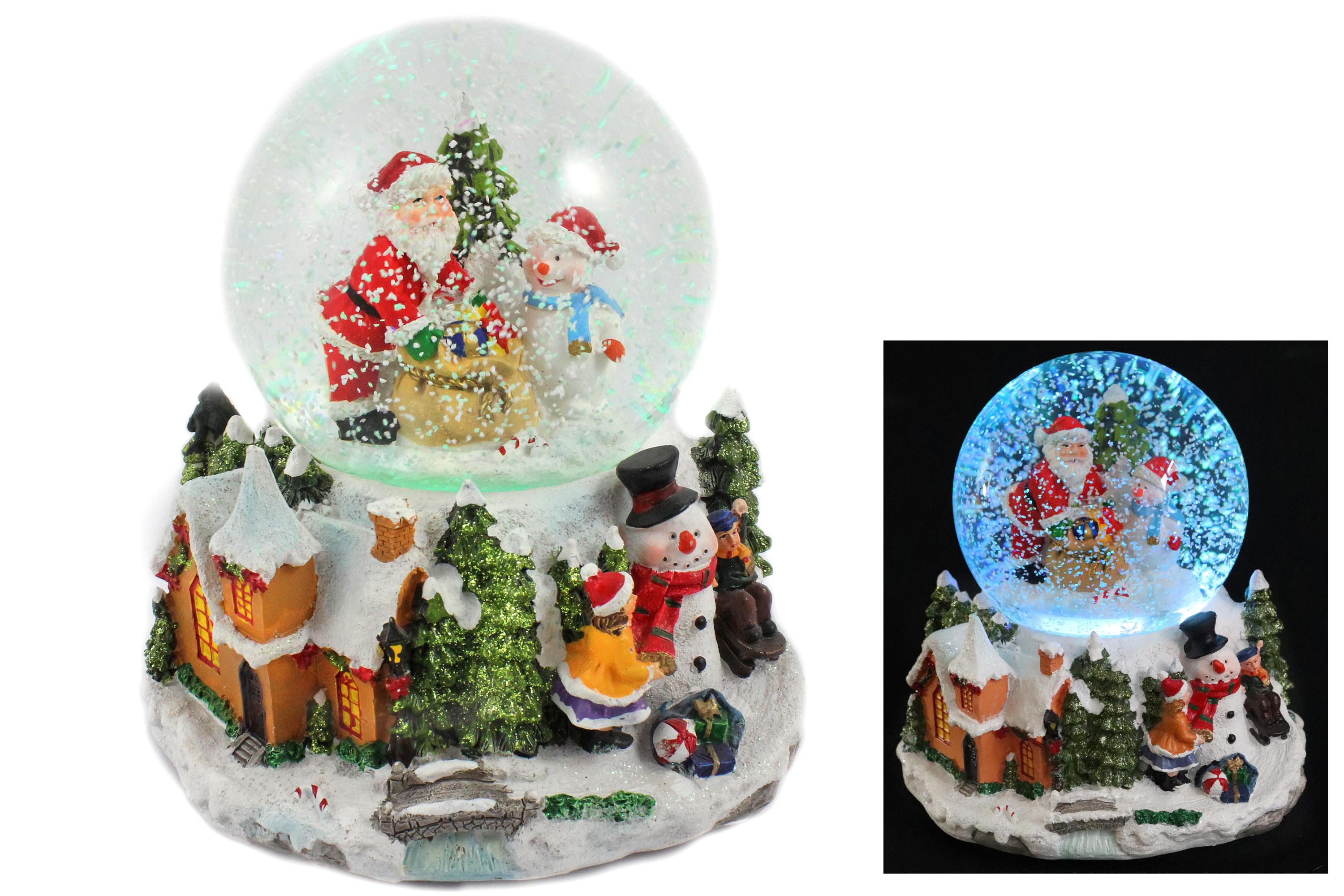 - DETAILS: Die auffallende bunte Schneekugel überzeugt vor allem durch seine Liebe zum Detail. Die winterliche Szenerie zusammen mit dem Glitzer-Finish verleihen ihr ein zurückhaltendes und dennoch weihnachtliches Aussehen. Im Inneren der Schneekugel befinden sich der Weihnachtsmann, sowie ein Schneemann, welche sich beide um den Tannenbaum herum versammelt haben und bereit sind, die Geschenke der Kinder zu verteilen.